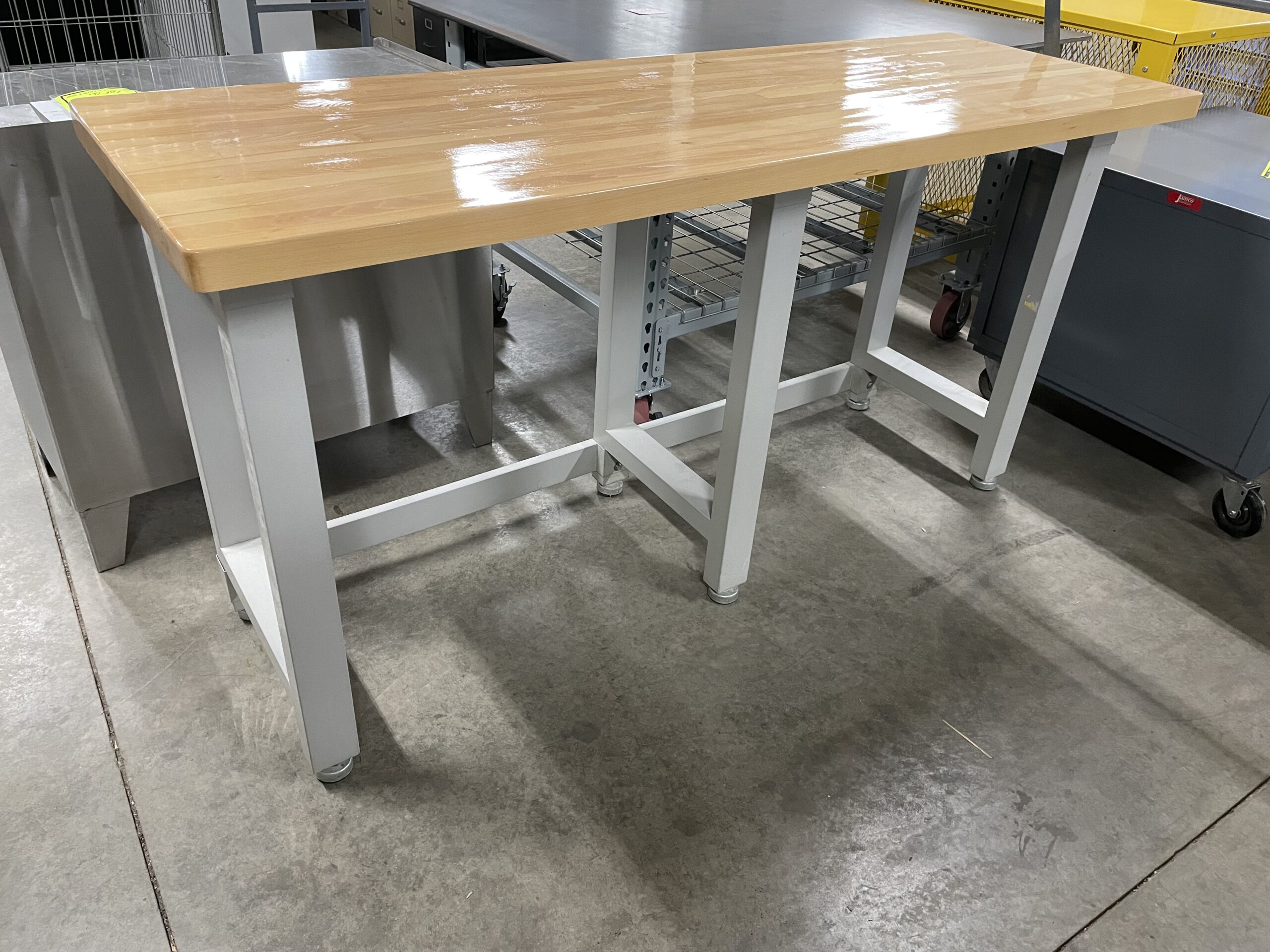 We have this work bench that has a refinished 24”x72” butcher block top (2” thick) and is 38” tall for $325.00