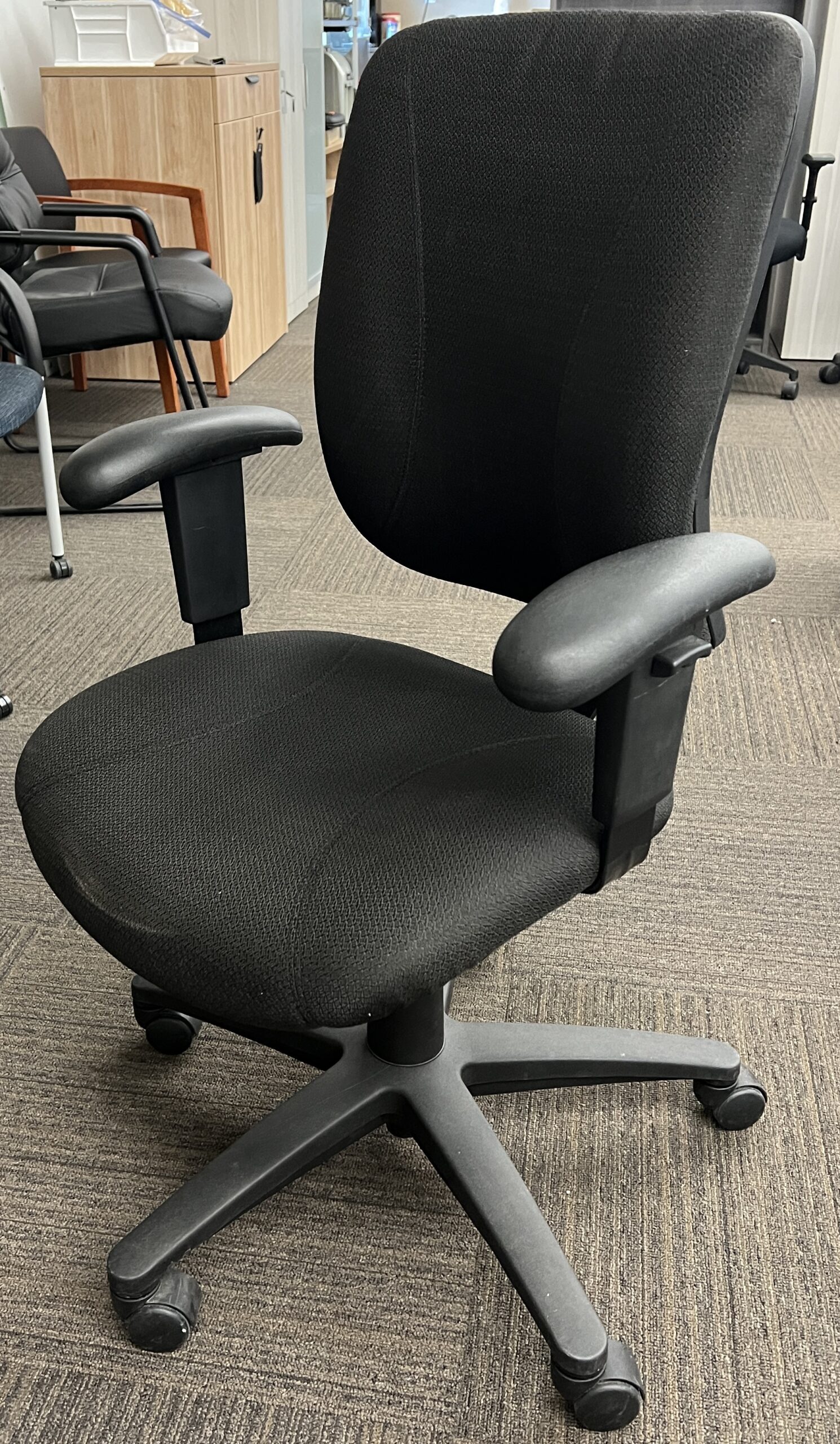 All-Black Fabric Task Chair w/ Thicker Arms – Used