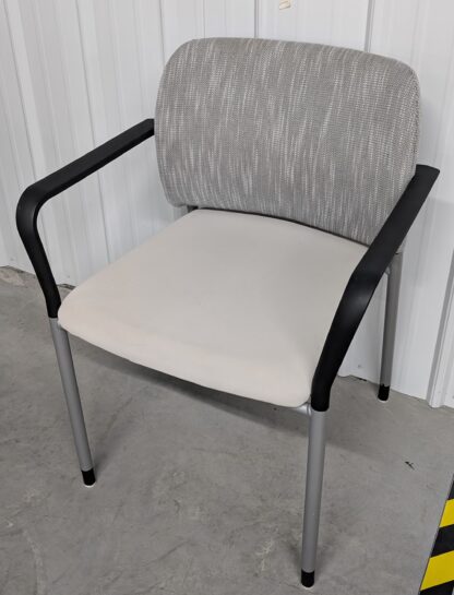 Allsteel Grey Vinyl Seat Grey Fabric Back Stack Chairs w/ Arms – Used
