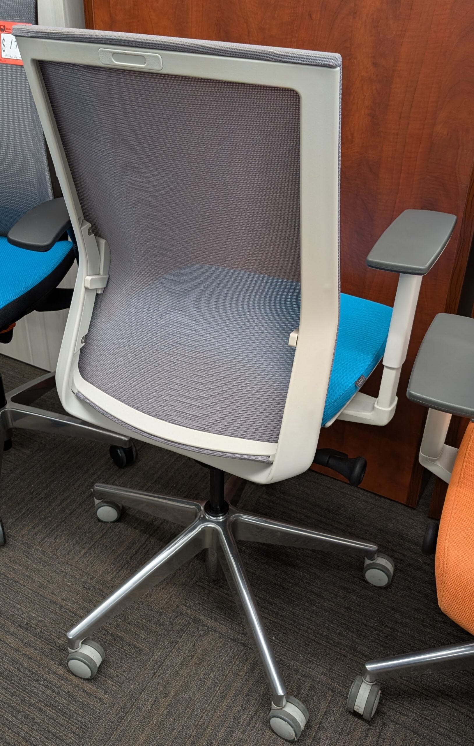 AMQ Blue/White Task Chair w/ Chrome Base – Used