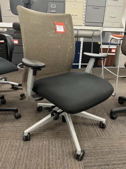 Black Fabric Seat Earth-Tone Mesh Back Task Chair – Used