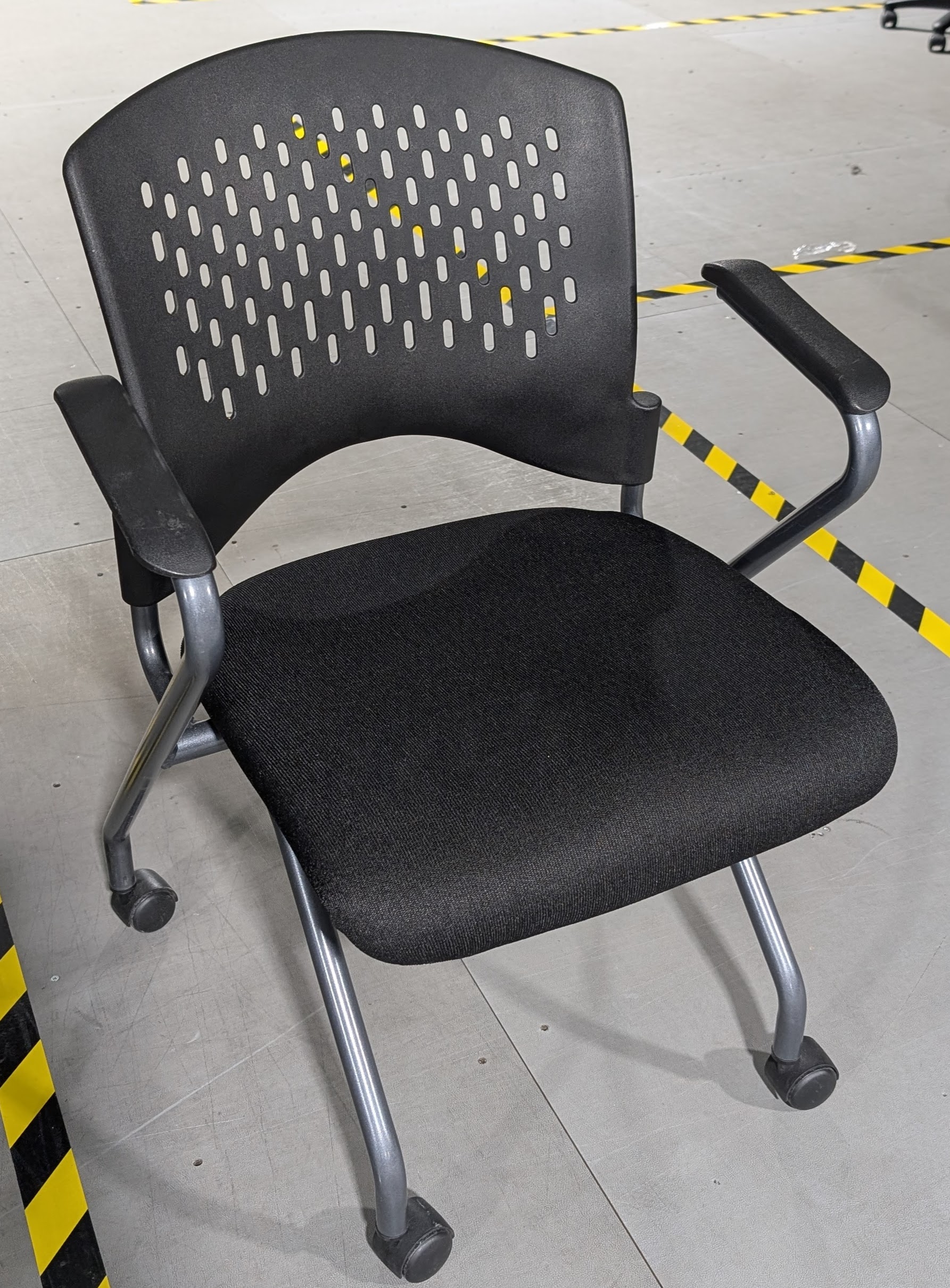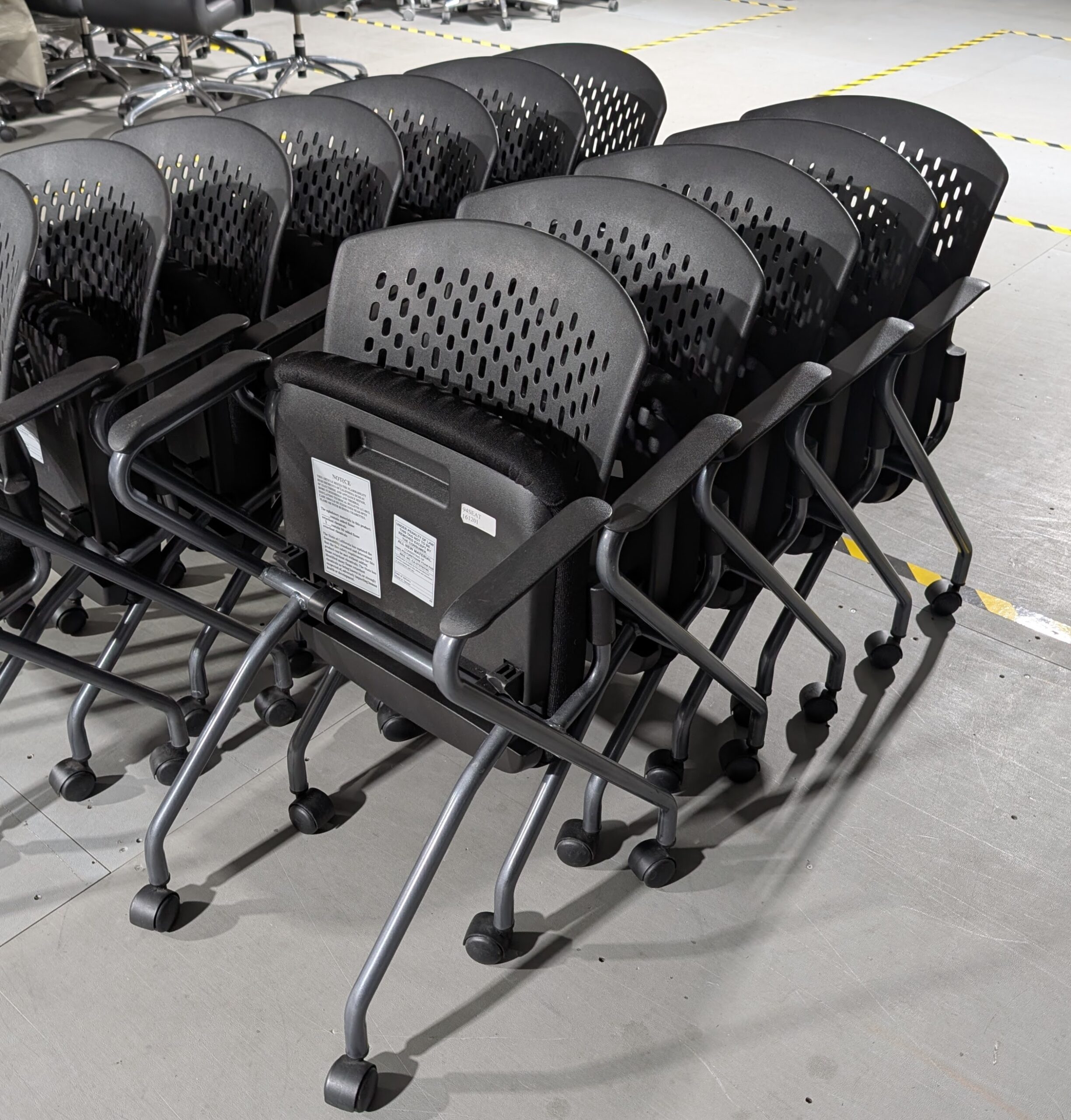 Black Fabric Seat Plastic Back Mobile Nesting Chairs w/ Arms – Used