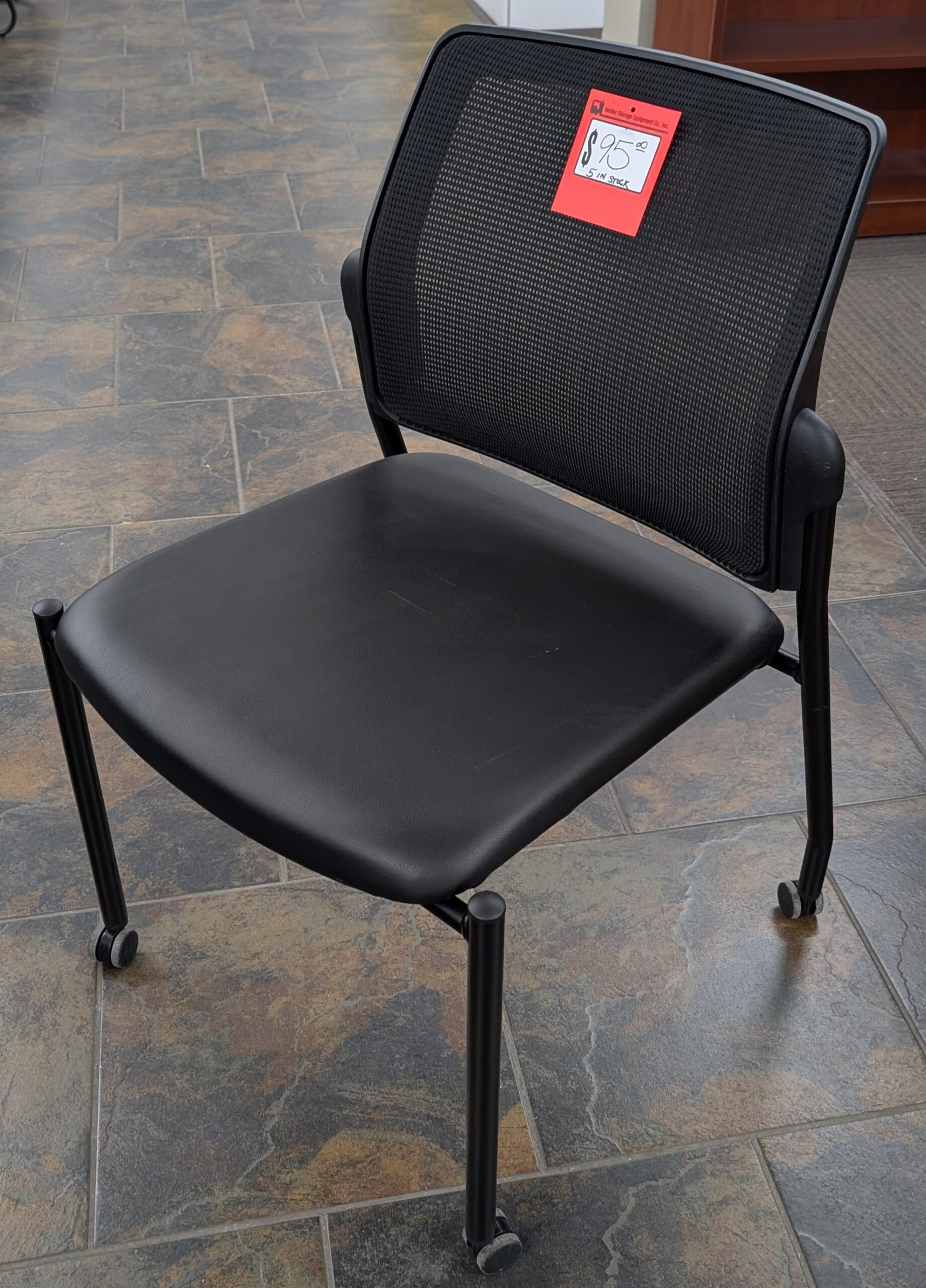 Black Vinyl Mesh Back Stacking Guest Chairs - Used quantity