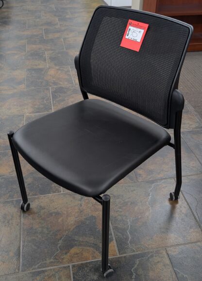Black Vinyl Mesh Back Stacking Guest Chairs – Used