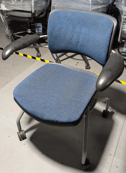 Blue Pattern Fabric Mobile Guest Chair w/ Arms – Used