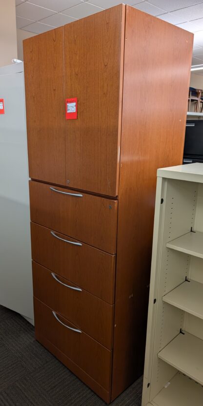 Cherry 30″x24″x82″H 4-Drawer Lateral File Storage Combo Cabinet – Used