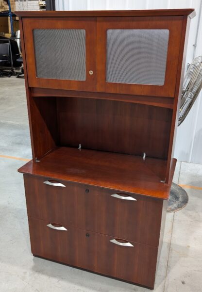 Cherry 37.5″x22″ Lateral Filing Cabinet w/ Hutch – Used