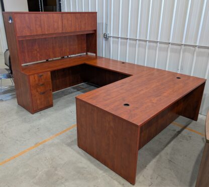 Cherry 6’x9′ U-Shape Desk Set w/ Hutch & 1 Drawer Pedestal – Used