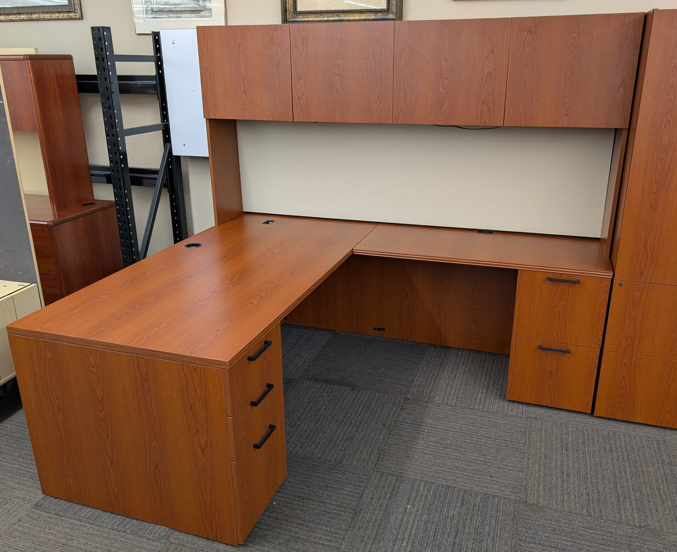 Cherry Laminate 6’x7′ L-Shape Desk Set w/ Hutch (R Return) – Used