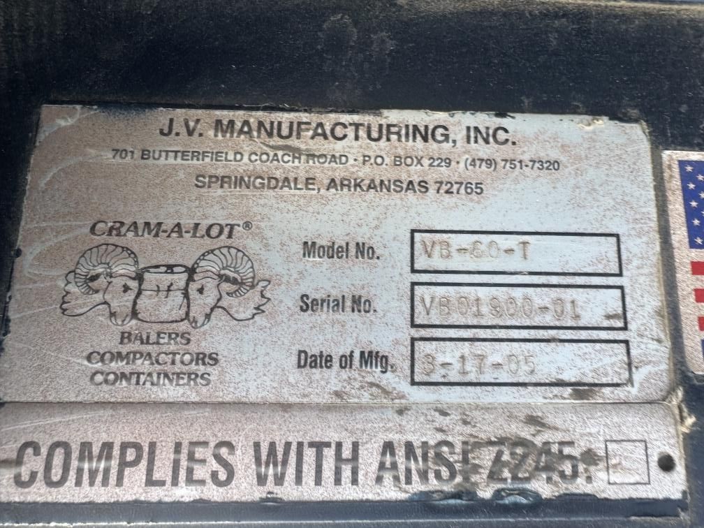 Cram-A-Lot Cardboard Baler Model VB-60-T – Used