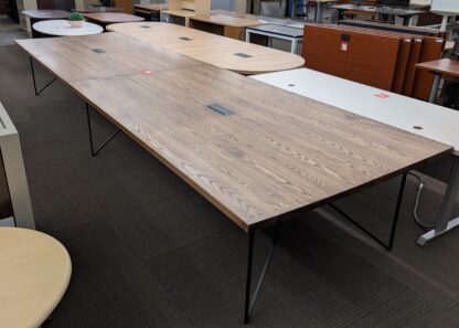 Dark Oak 17’x5′ Rectangular 2-Piece Conference Table w/ Electrical – Used