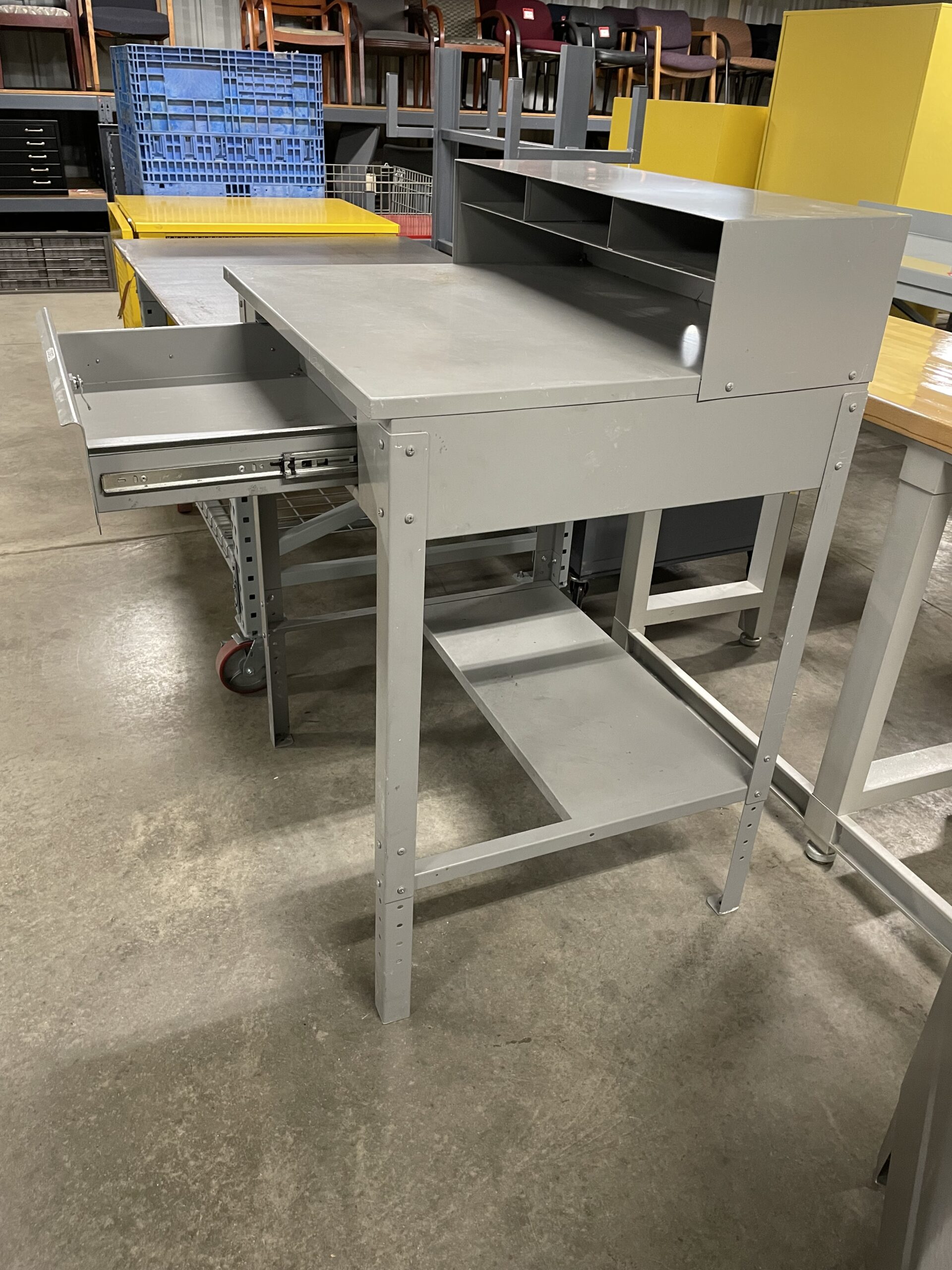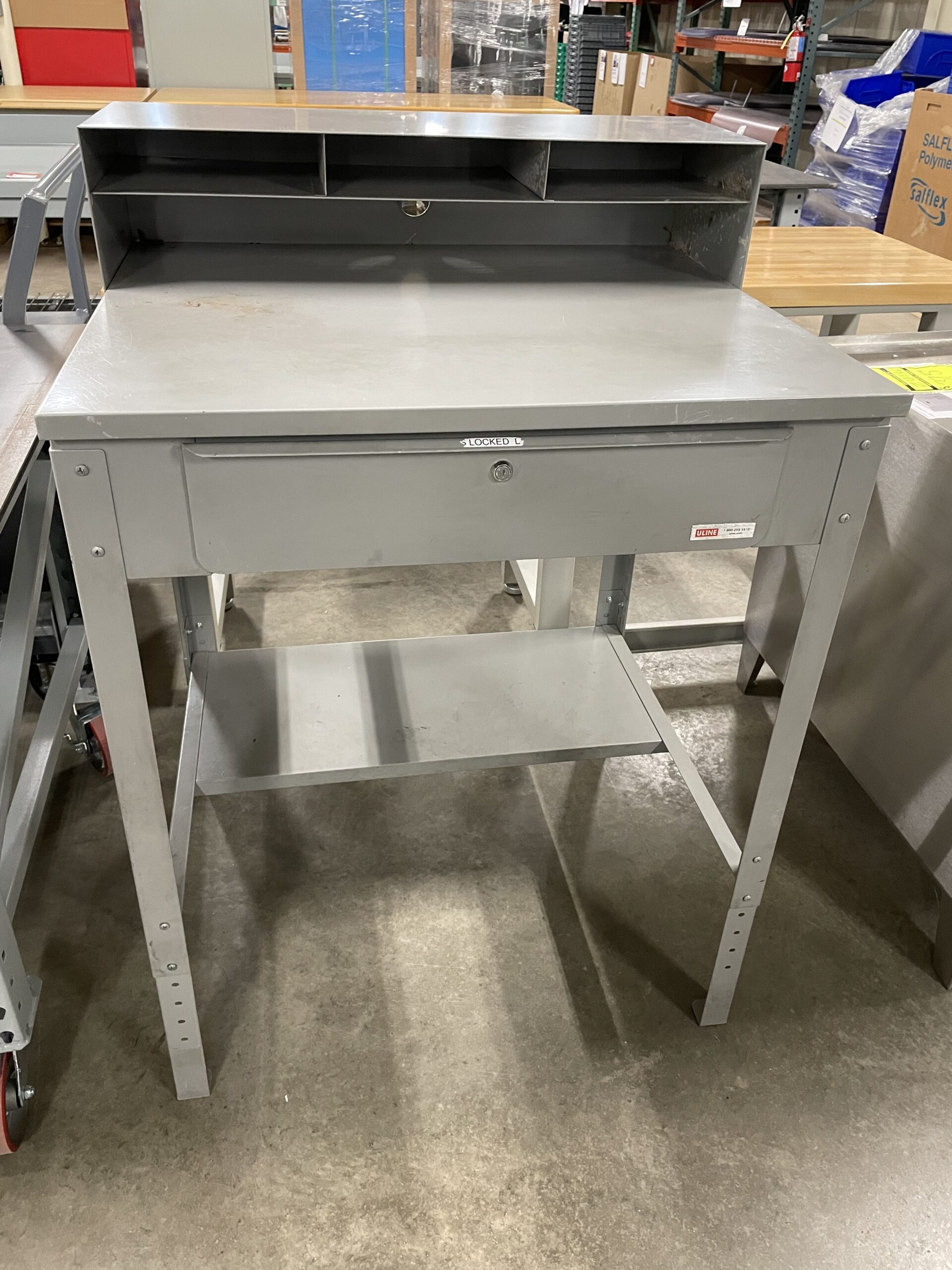 We only have 1 of these foreman’s desk available. It is 30” deep x 36” wide and adjustable height. Sorry no key for the drawer.