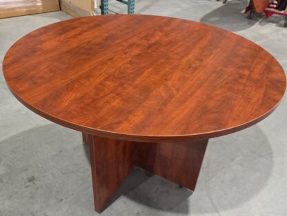 Harmony Cherry 48″D Round Table w/ Laminate X-Base – Used