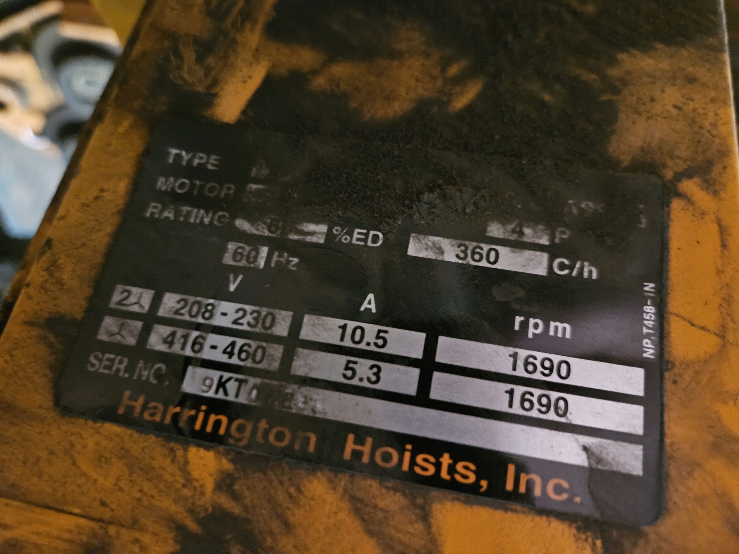 These Chain Hoists are very clean and in excellent condition. They Multitap but are currently wired for 460 3 Phase. They are located at our Monticello, IA facility but feel free to give Ron a call at 319-465-4061 for more information.