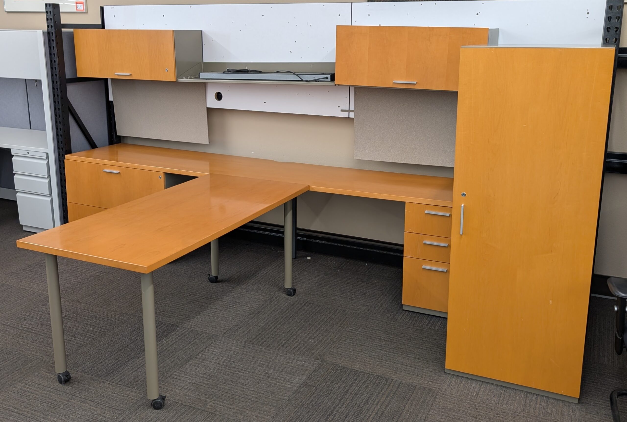 Maple 8’x6′ U-Shape Desk Set w/ Hutch – Used