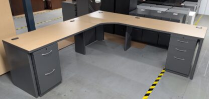 HON Maple/Charcoal 90″x90″ Corner L-Shape Desk Set – Used