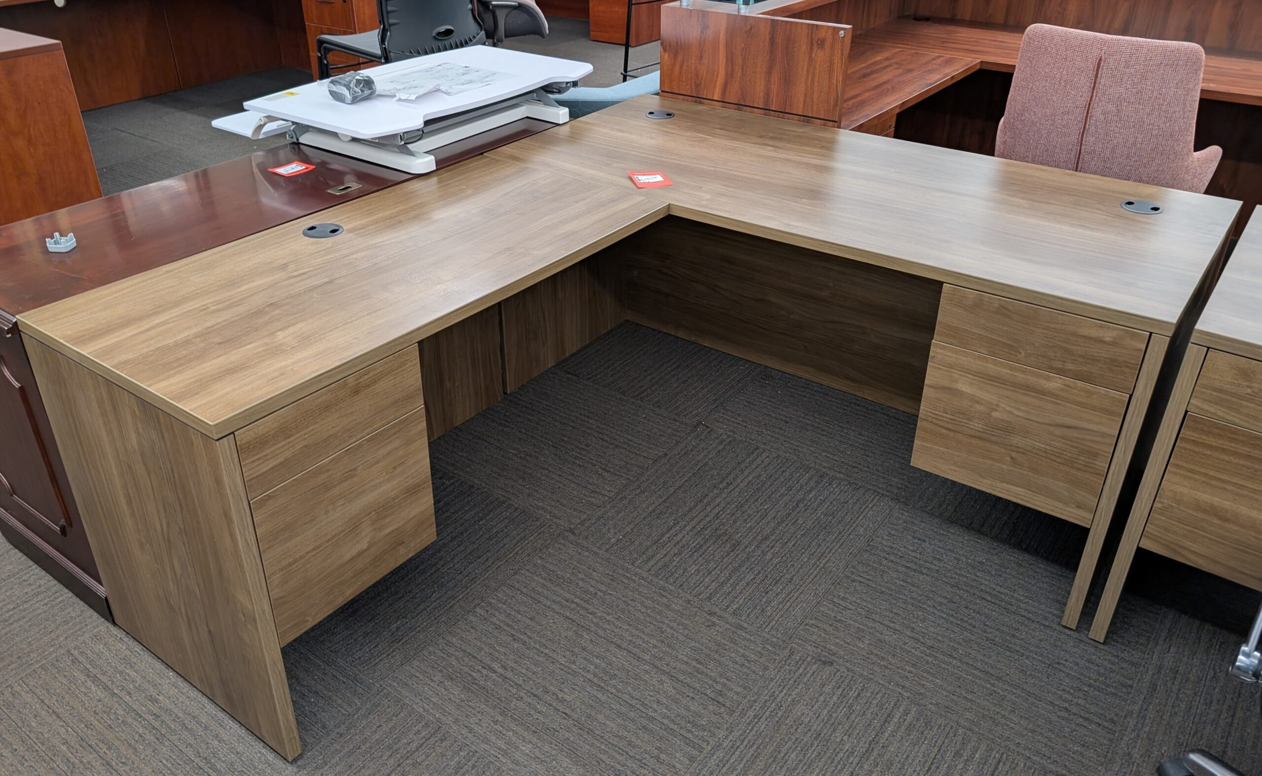 HON Walnut L-Shape Desk Set w/ Left Return & 2 Hanging Pedestals - Used quantity