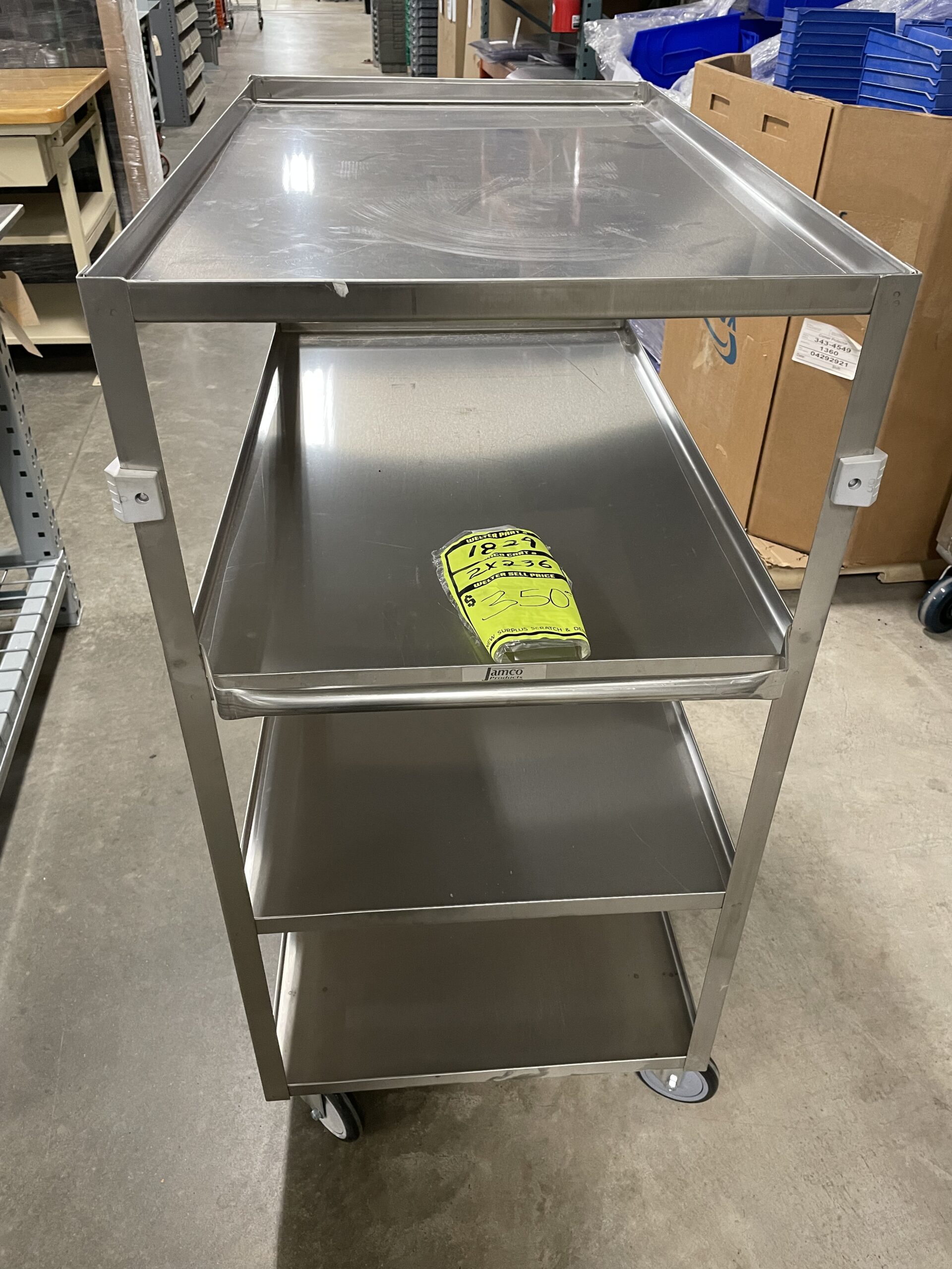 We have this Jamco stainless steel surplus new cart model 2X236 that is 24”x36”x48” tall and has 4 shelves for $350.00. It is located at our Monticello, IA location.