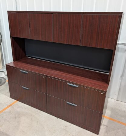 Mahogany Laminate 71″x22″ Buffet Credenza w/ Hutch – Used
