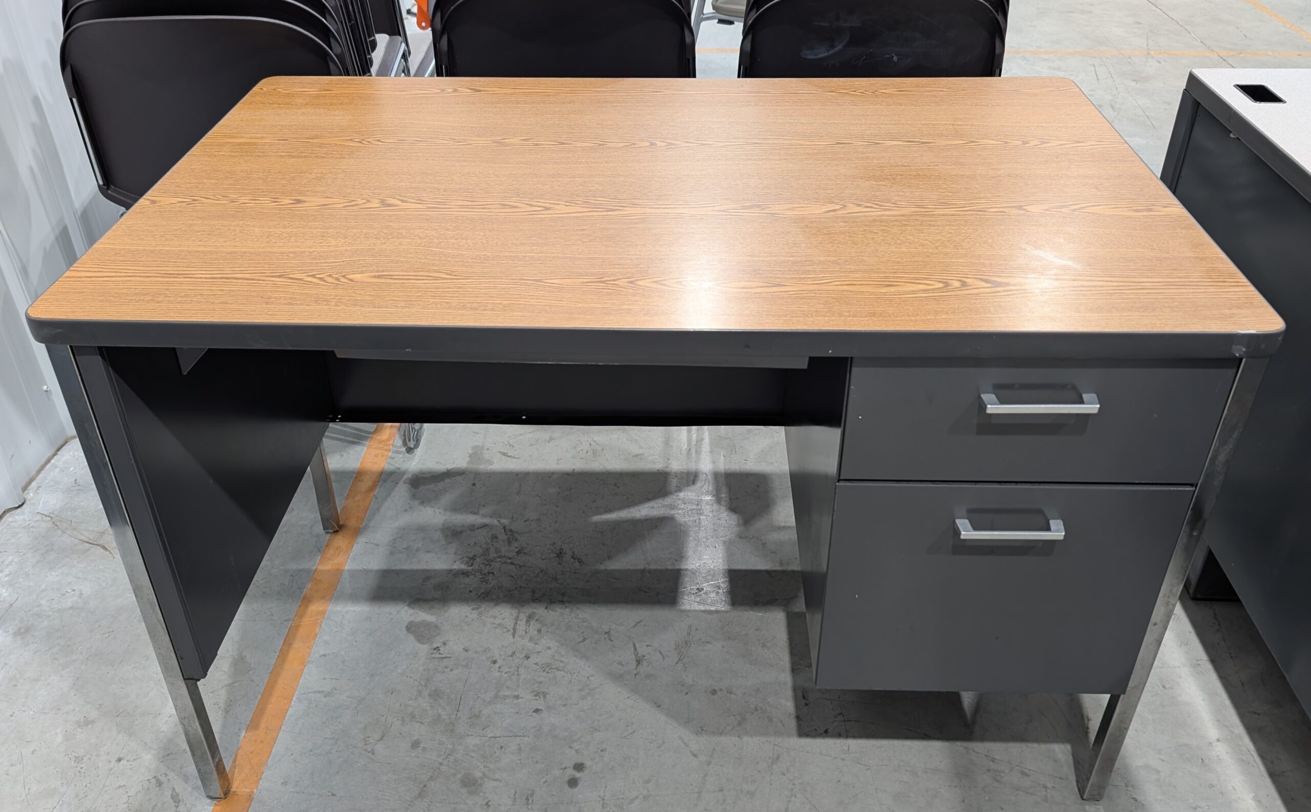 Oak Laminate Charcoal Steel 4'x30" Single Ped Desk w/ Center Drawer - Used quantity