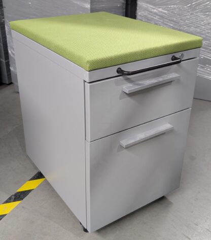Silver 14.5″x20″x22″H Mobile Box/File Pedestal w/ Green Fabric Cushion – Used