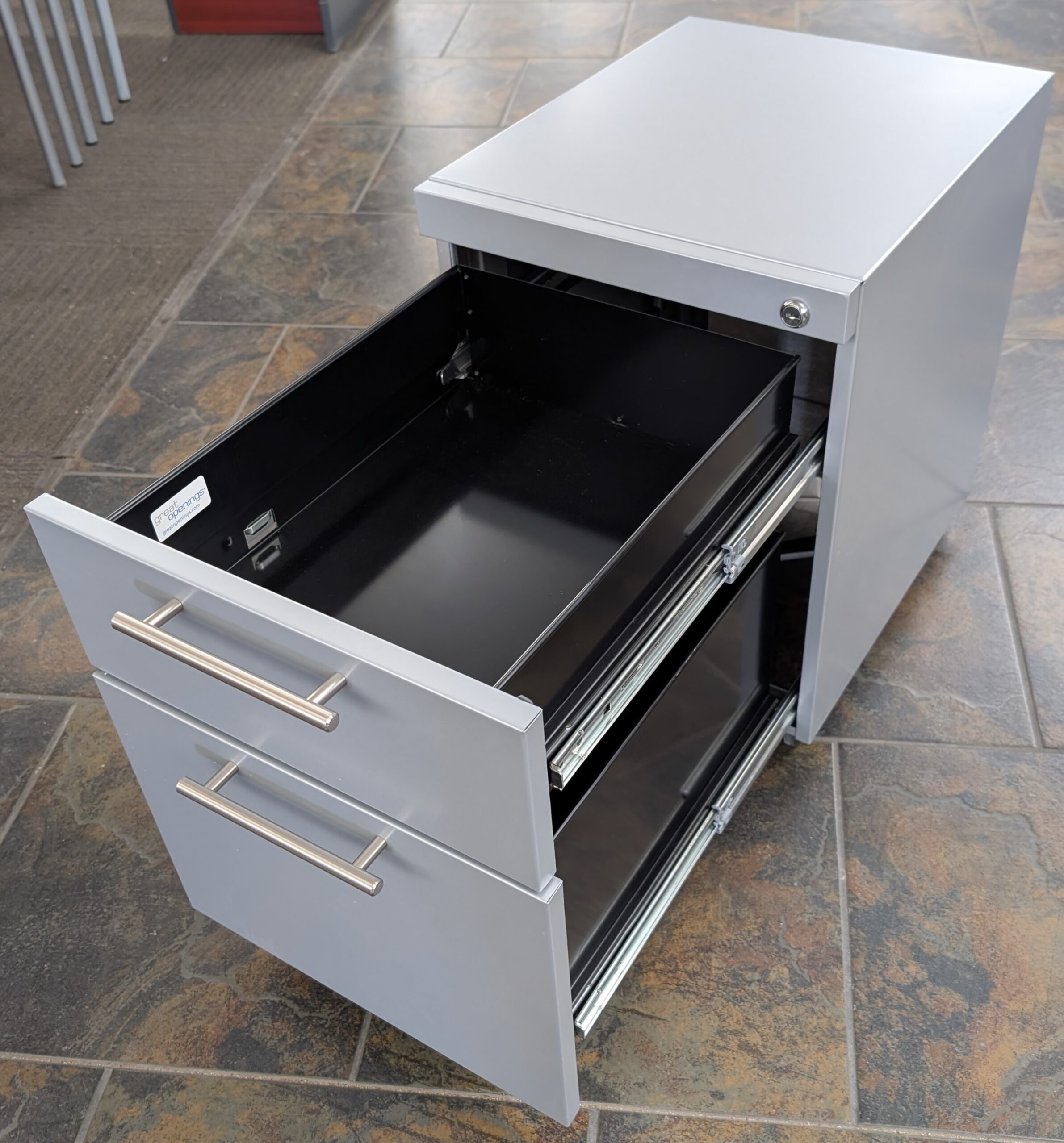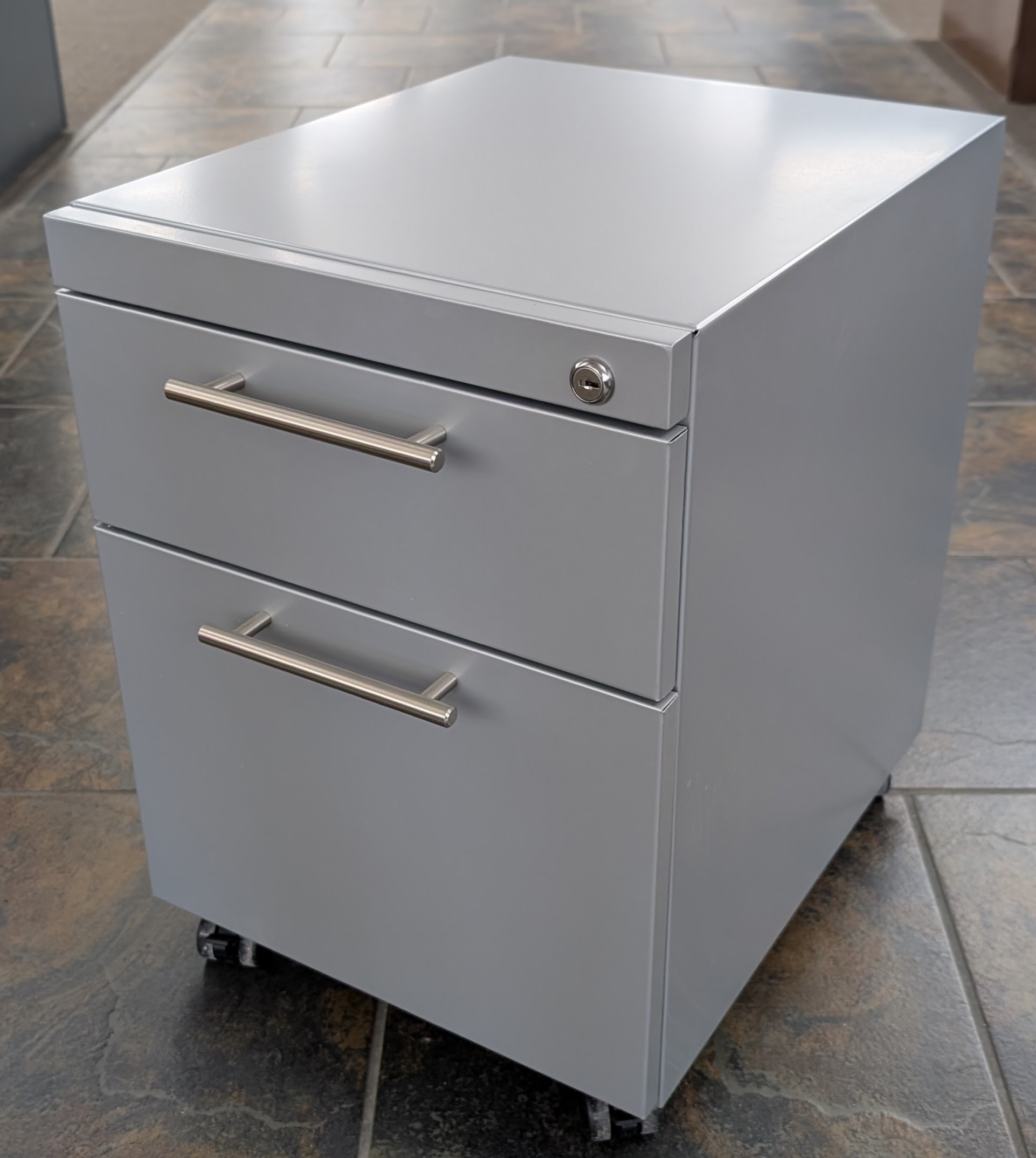 Silver 15″x19″x21″H Box File Mobile Pedestal w/ Chrome Handles – Used