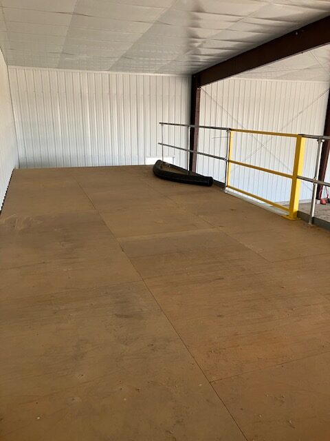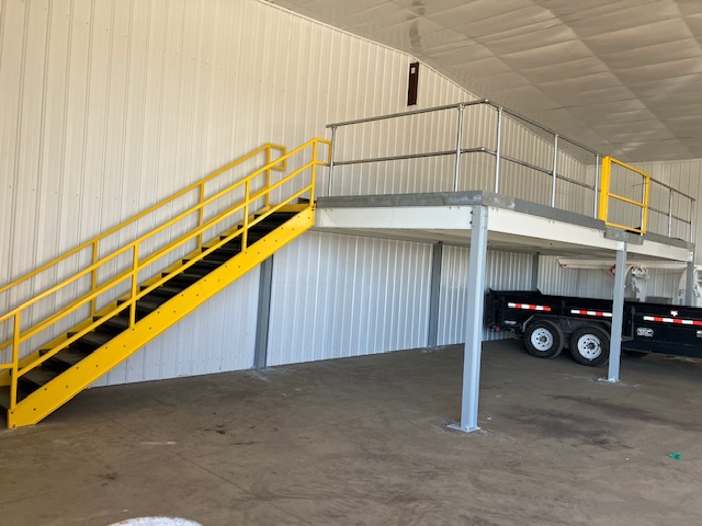 Check out this this small mezzanine we recently completed for a local Iowa customer. He needed the additional space so we installed this! Please give Ron a call at 319-465-4061 if you are in the market for one of our reconditioned mezzanines!