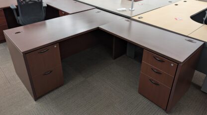 Teknion Royal Cherry 66″x78″ L-Shape Desk Set w/ 2 Drawer Pedestals – Used