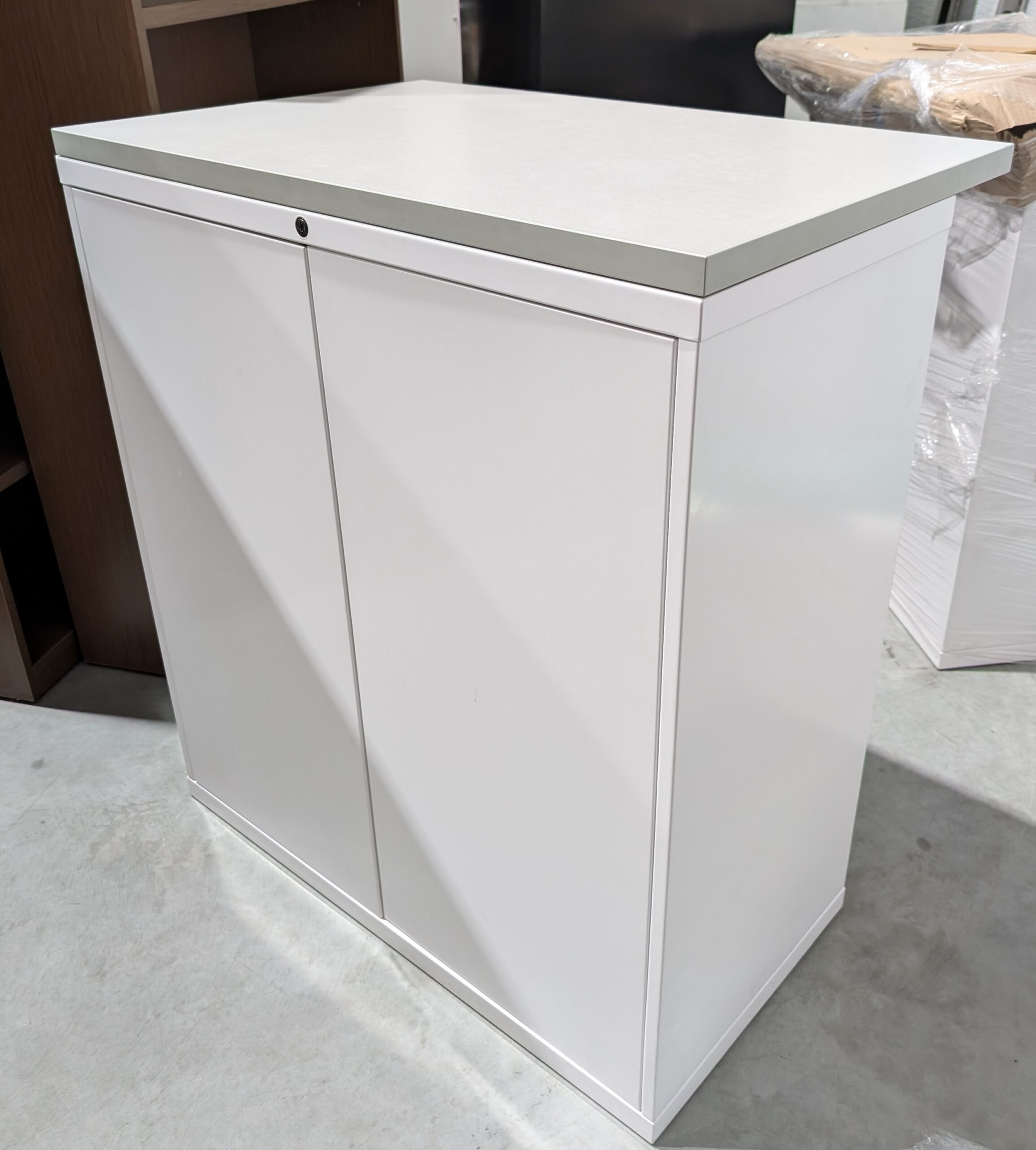 White 36″x24″x40″H 2-Door Storage Cabinets w/ Grey Laminate Surface – Used