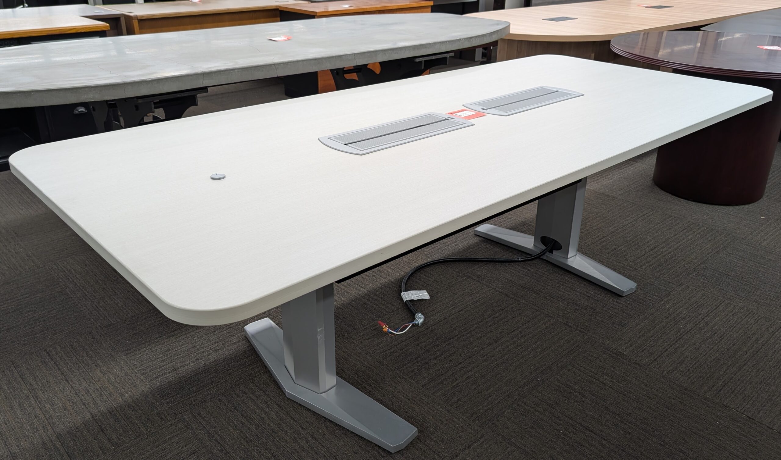 White Wood Grain 8'x42" Conference Table w/ Silver Base & Grommets - Used quantity