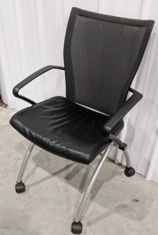 All-Steel “Seek” Black Vinyl Seat Black Mesh Back Mobile Visitor Chair – Used